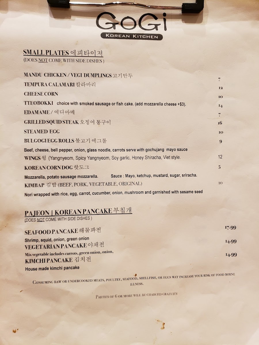 Gogi Korean Kitchen Menu